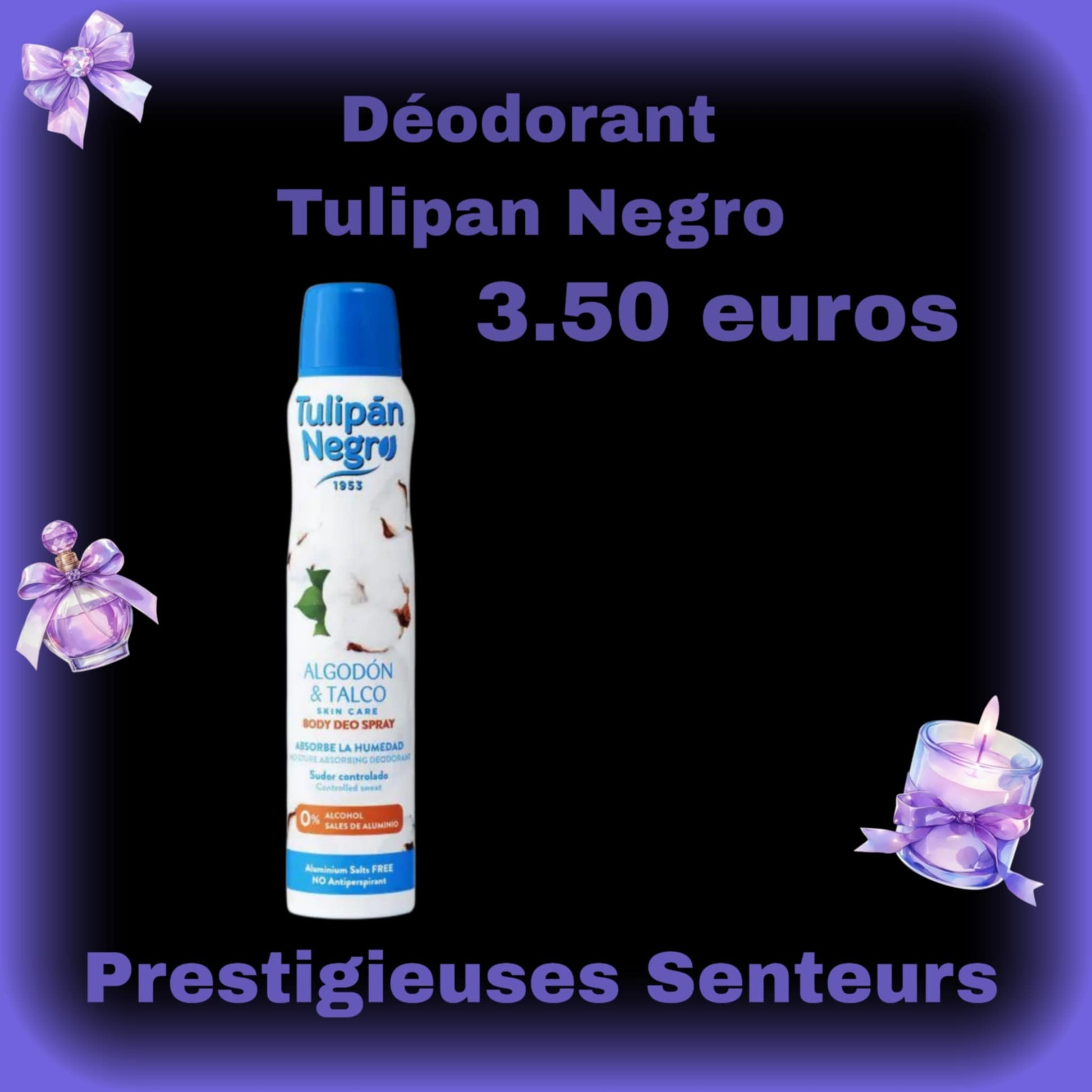 Déodorant 200ml . Tulipan Negro. Parfum coton et talc