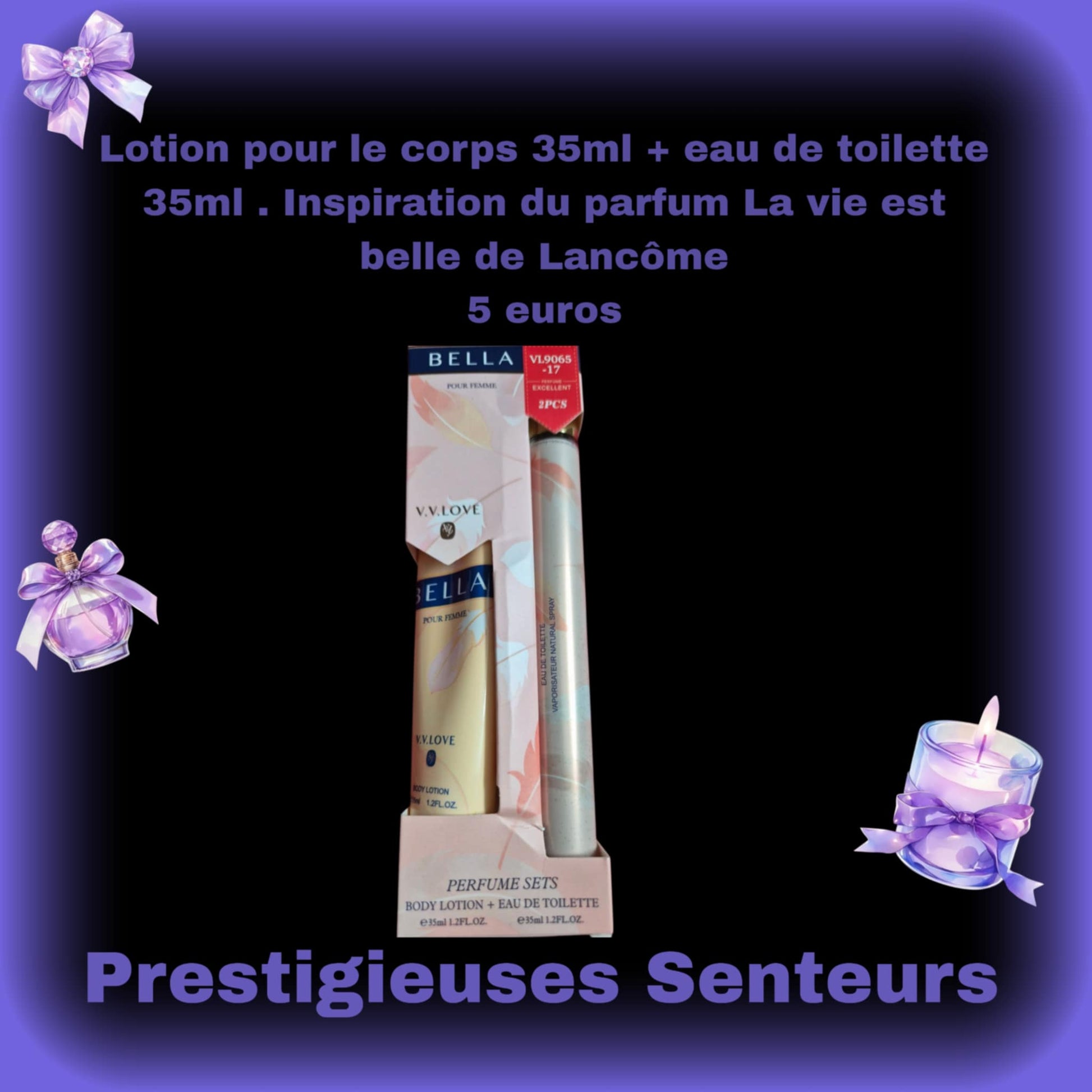 Lotion pour le corps 35ml + eau de toilette 35ml . Inspiration du parfum La vie est belle de Lancôme